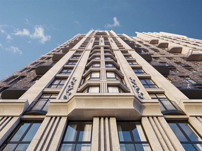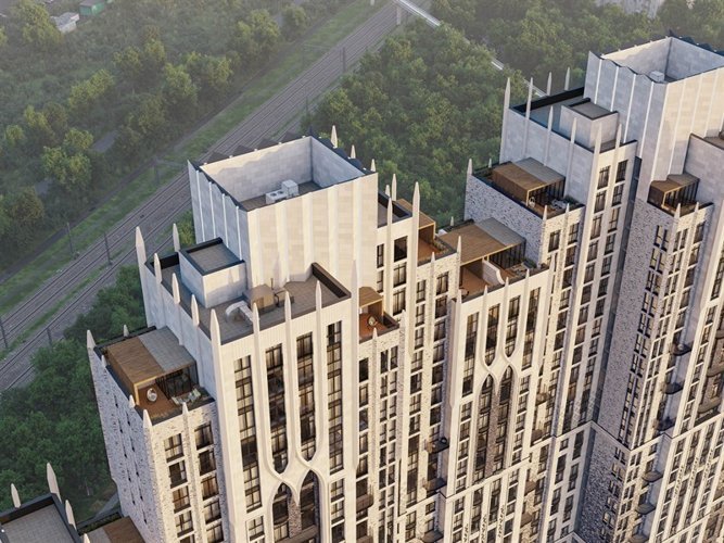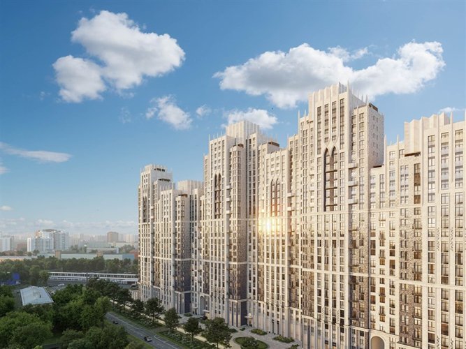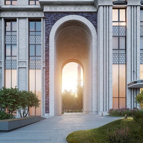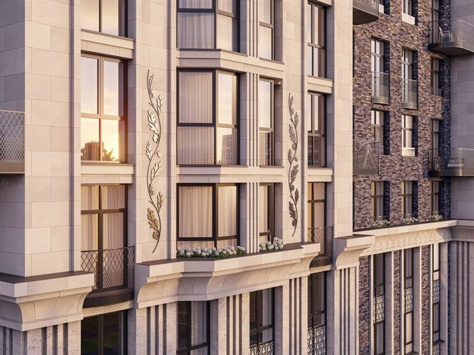 Архитектура дома — современное прочтение торжественного и изящного стиля ар-деко. Элементы неоклассического стиля: карнизы, эркеры, арки, балконы с декоративными металлическими решетками и стремящиеся ввысь пики — все придает дому особую торжественность и подчеркивает его красоту. В доме будет 6 подъездов. Этажность от 21 до 28, что обеспечит панорамные виды на город.