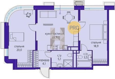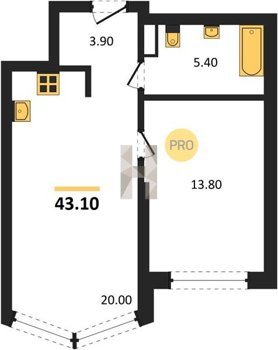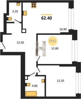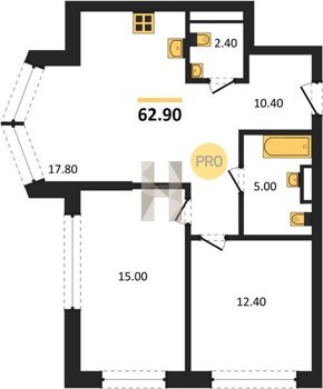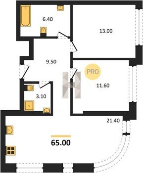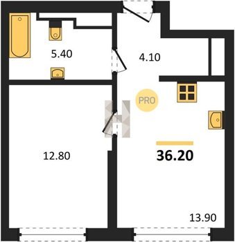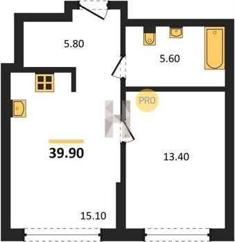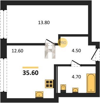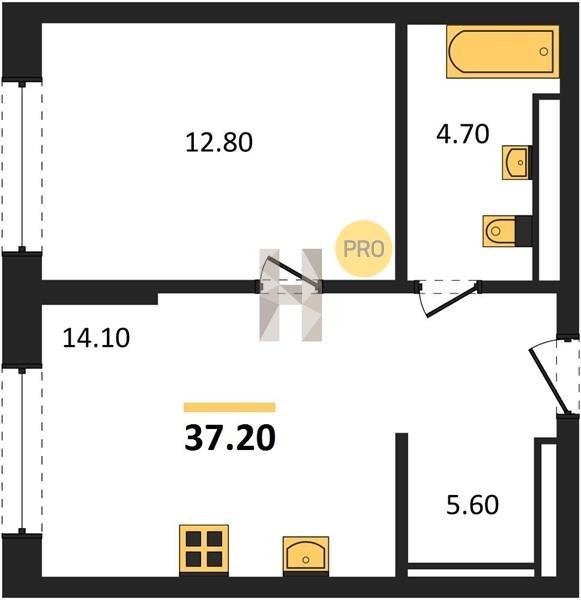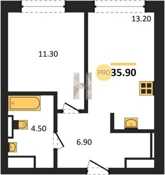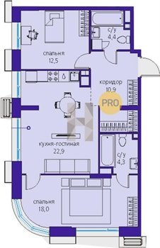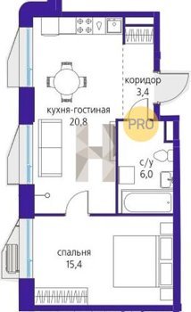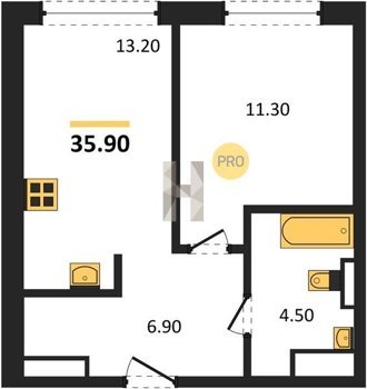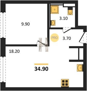 Площадь от 34.9 м2
