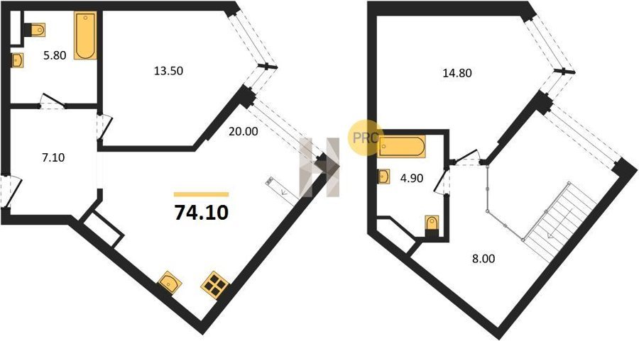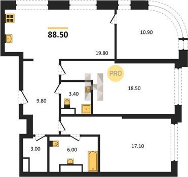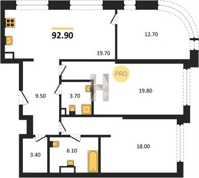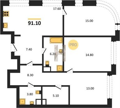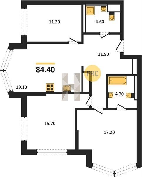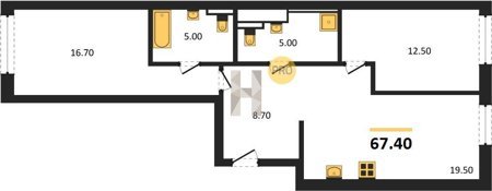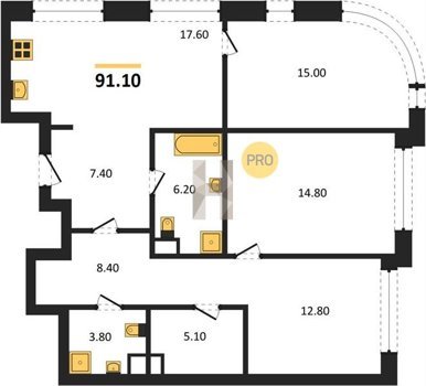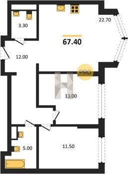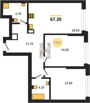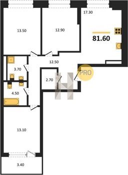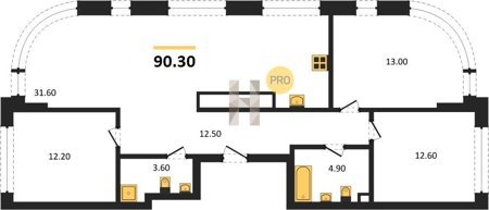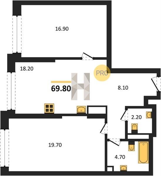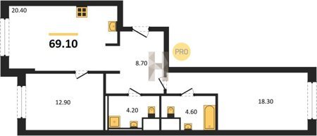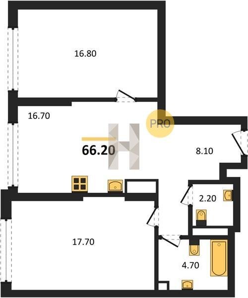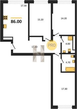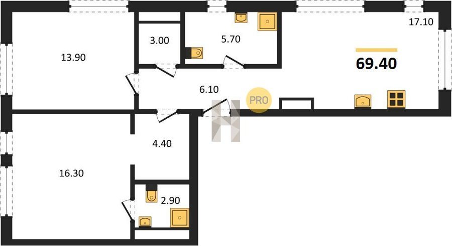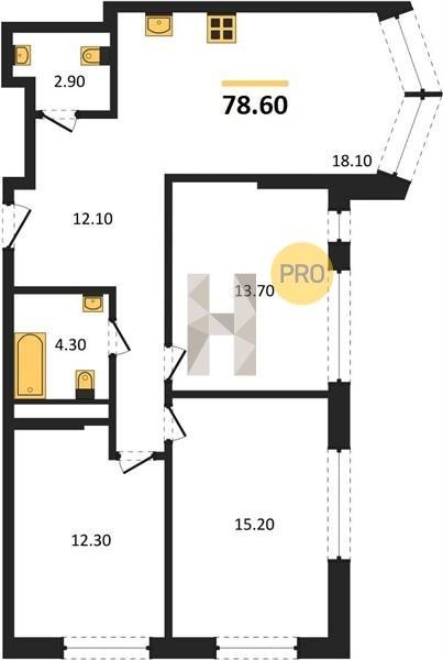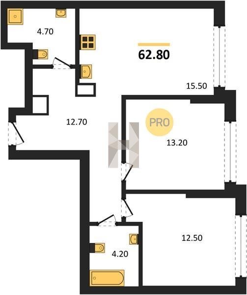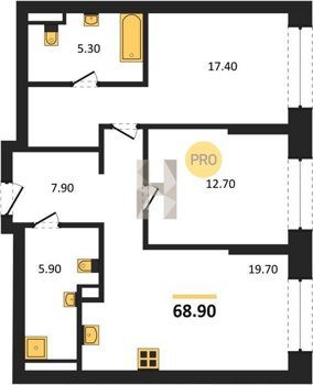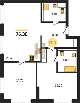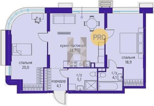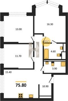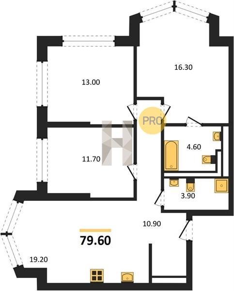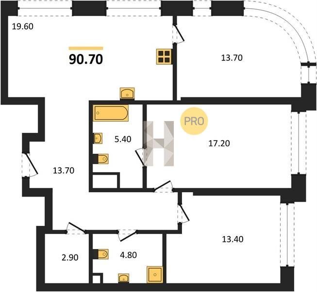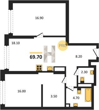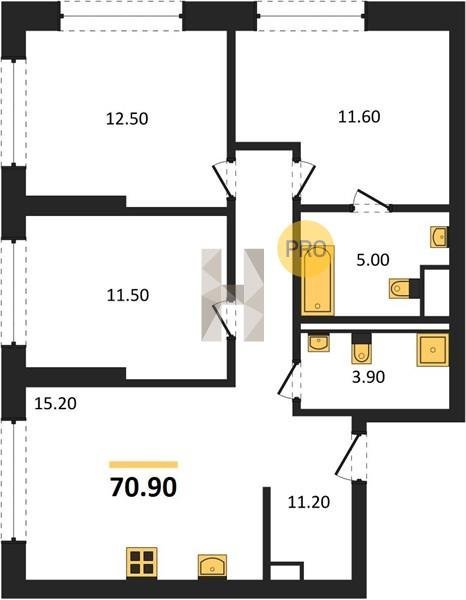 Площадь от 70.9 м2