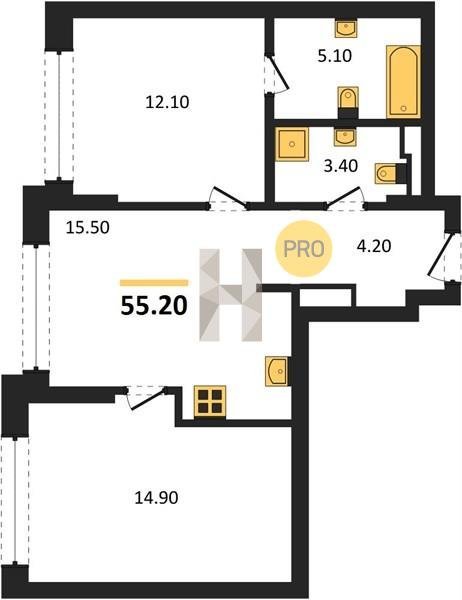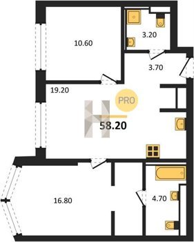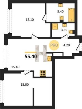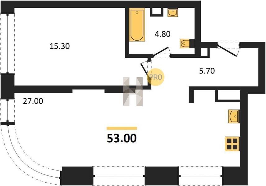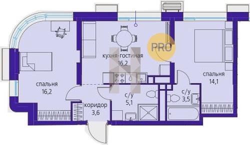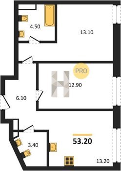 Площадь от 53.2 м2