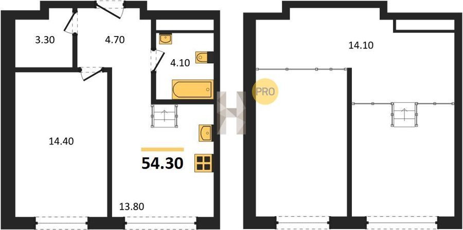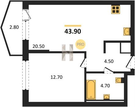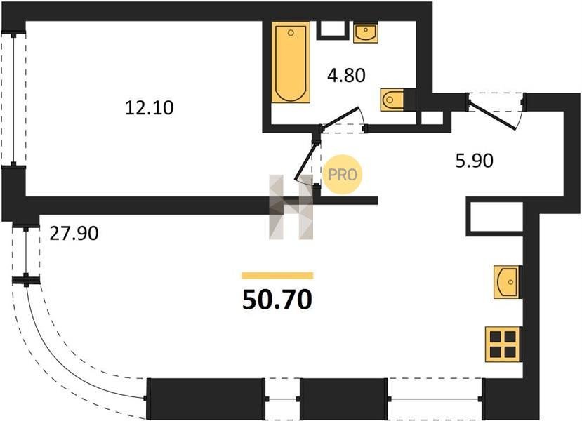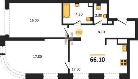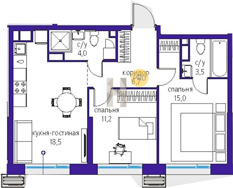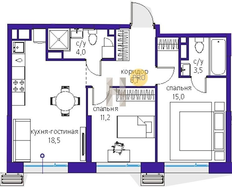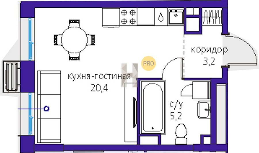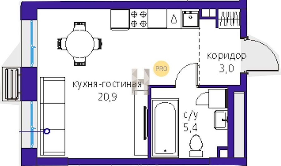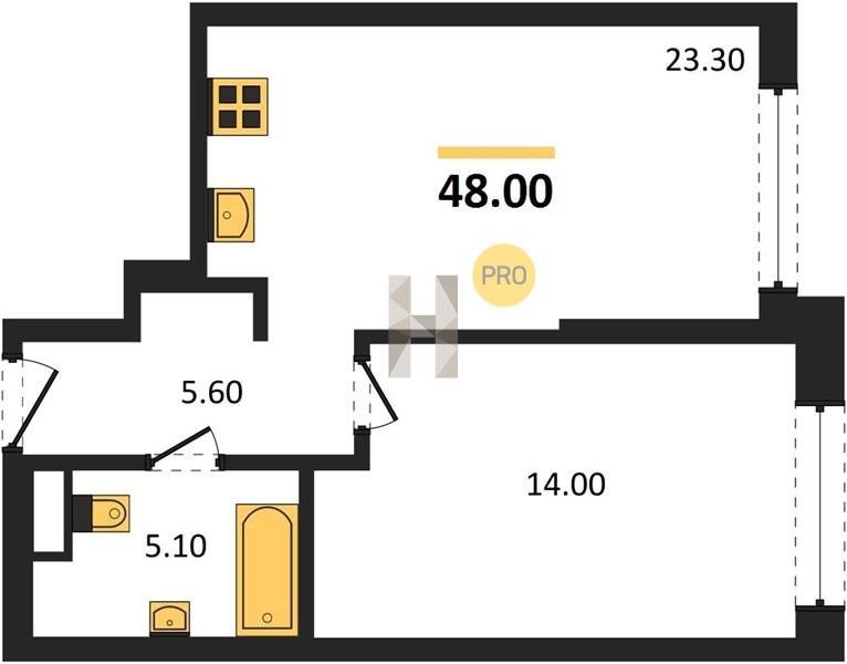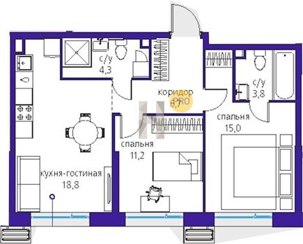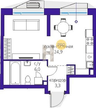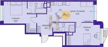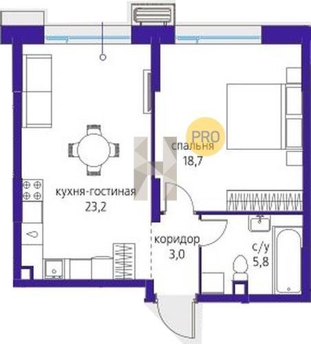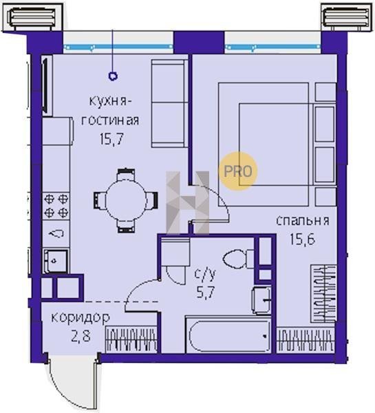 Площадь от 28.8 м2
