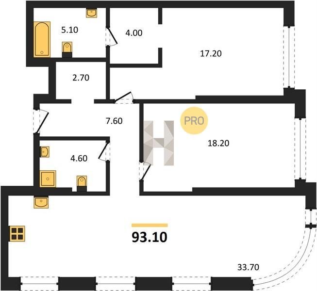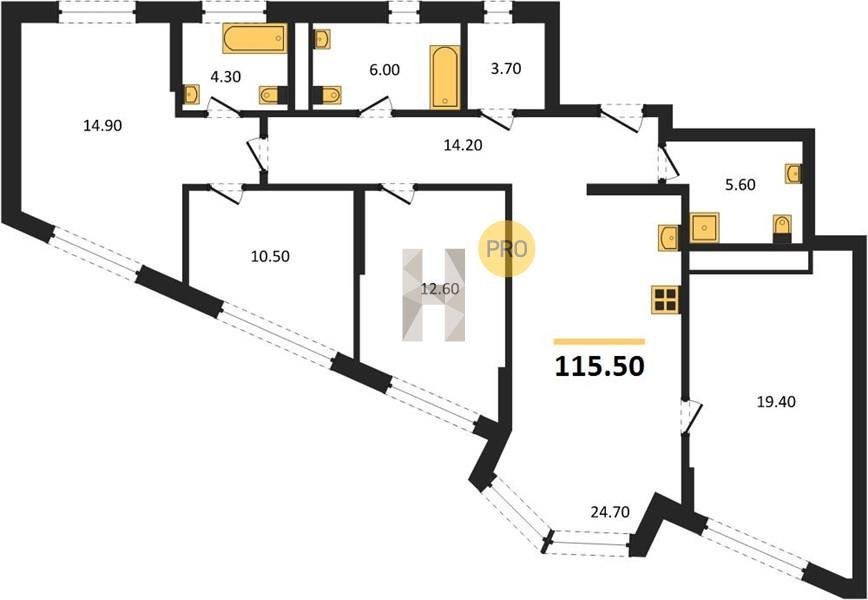 Площадь от 115.5 м2