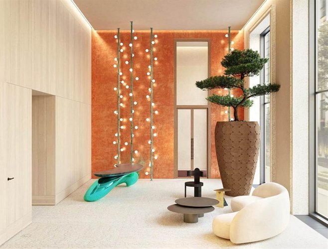 В каждом корпусе будут расположены зоны ресепшн с лаундж-зонами, колясочные комнаты, санузлы и мойка для лап собак в отдельном помещении. Современные системы кондиционирования, шумо- и звукоизоляции, скоростные бесшумные лифты, система «умный дом» с датчиками контроля электропотребления, защиты от протечек, пожарной и охранной сигнализации. Обязательной и важной частью проекта является большая уникальная детская площадка из натурального дерева на песке.
