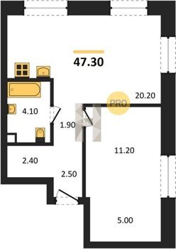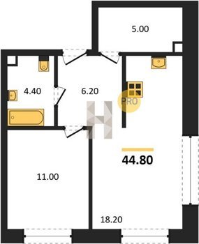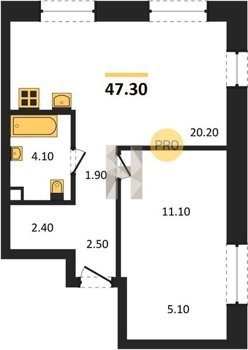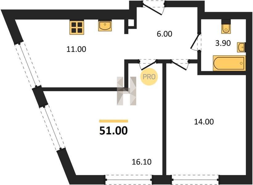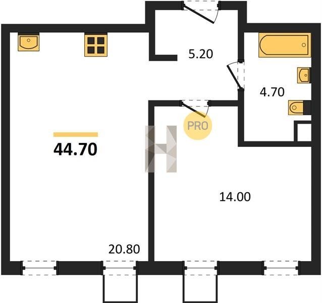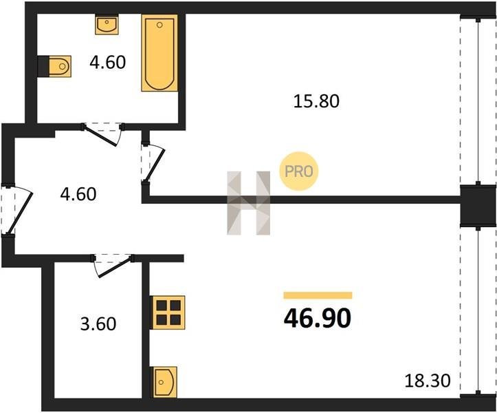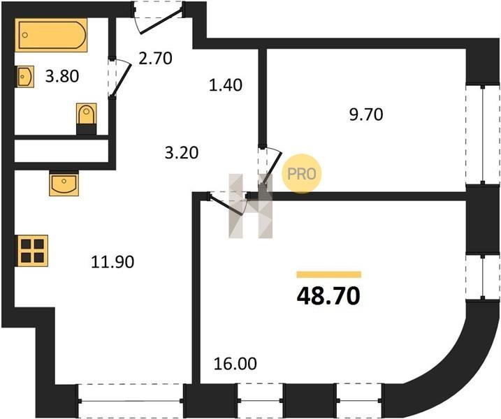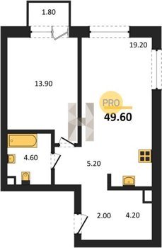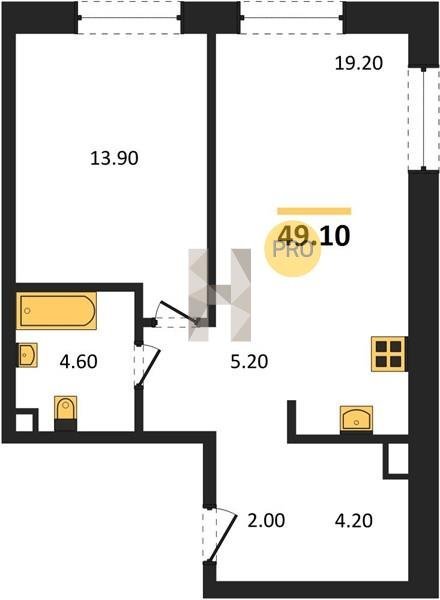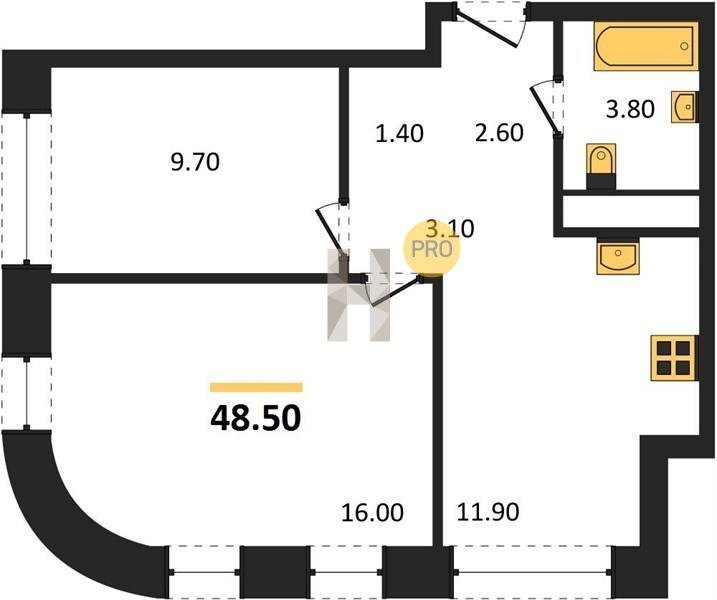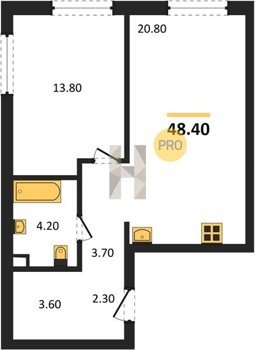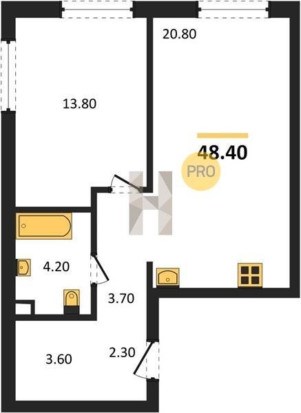 Площадь от 48.5 м2