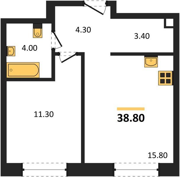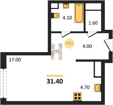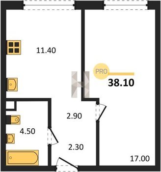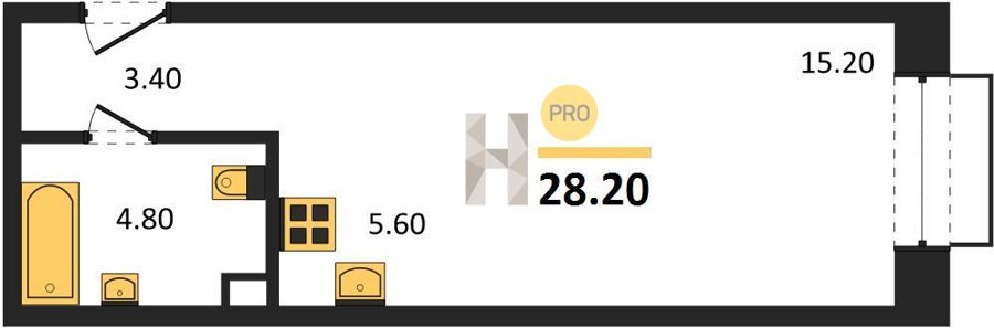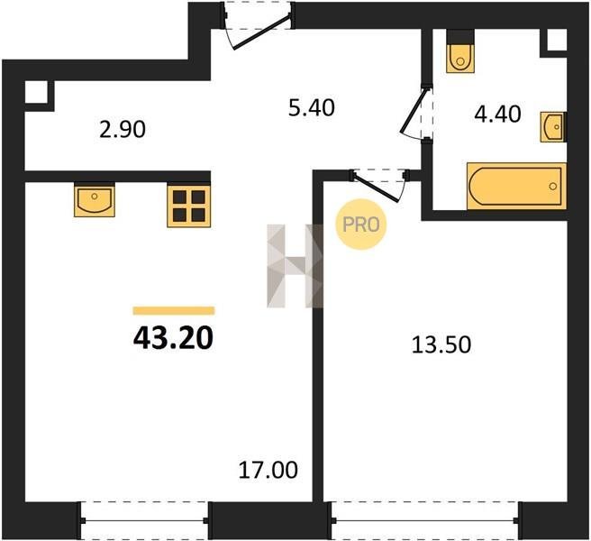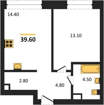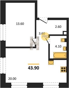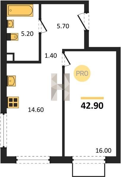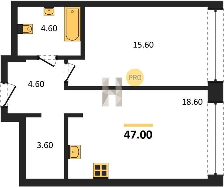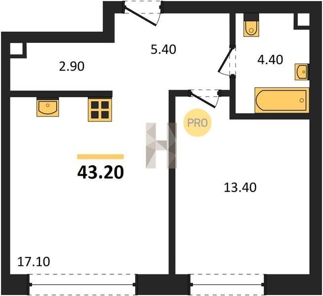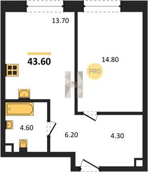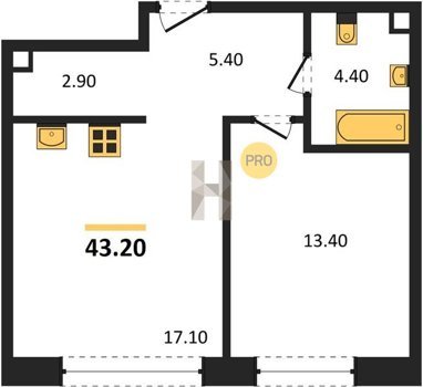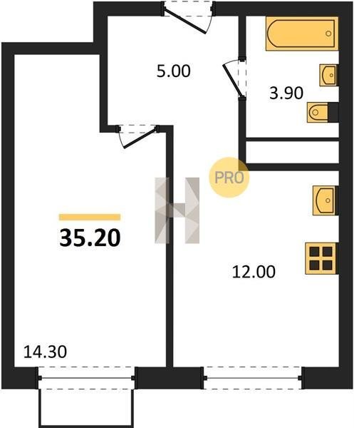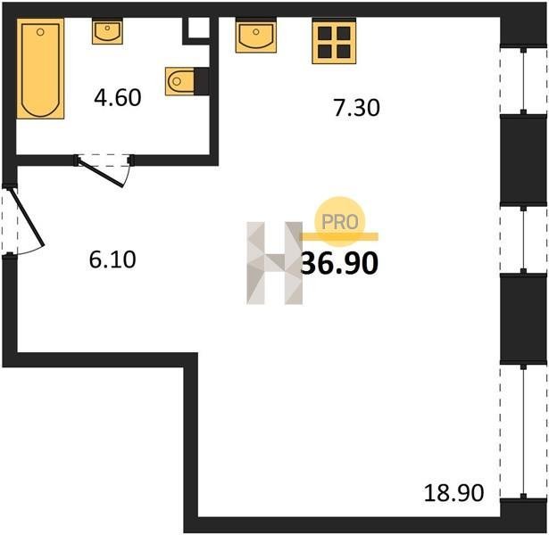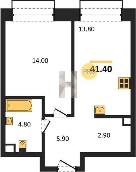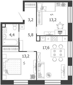 Площадь от 32.6 м2