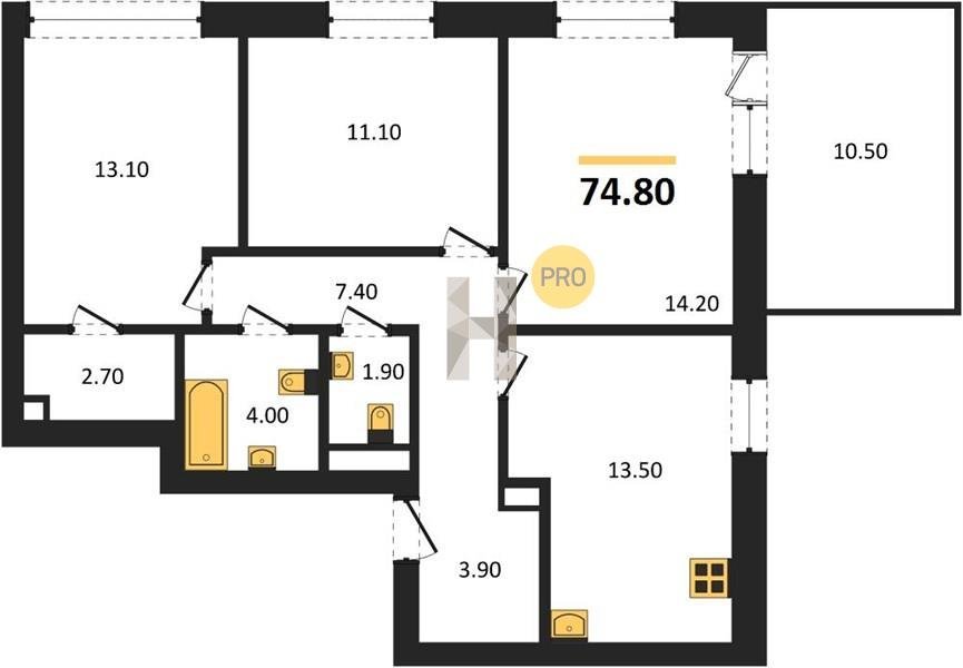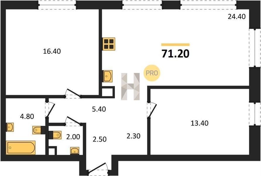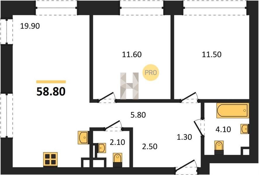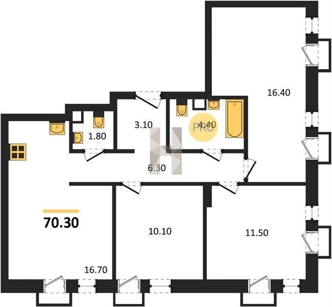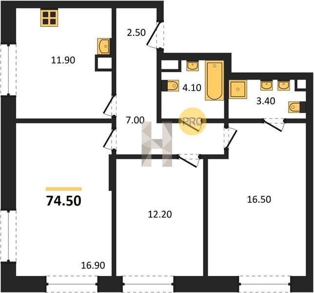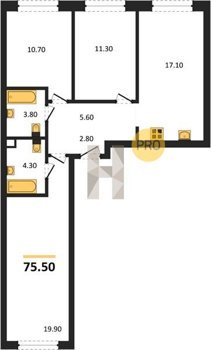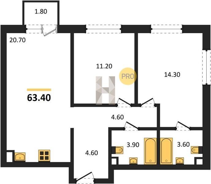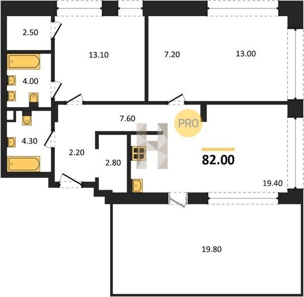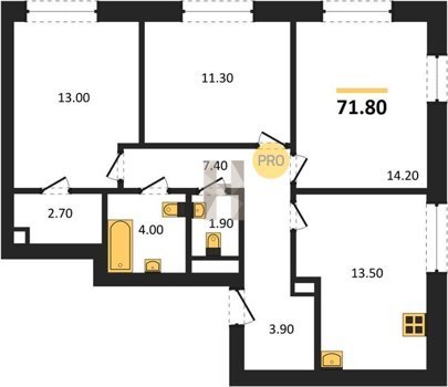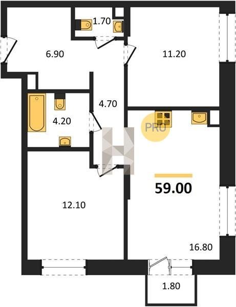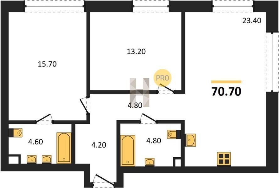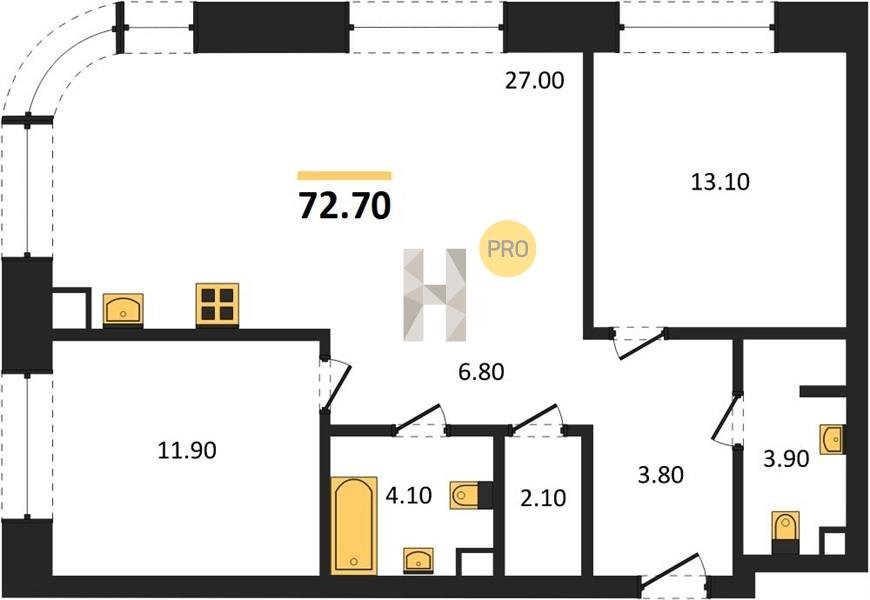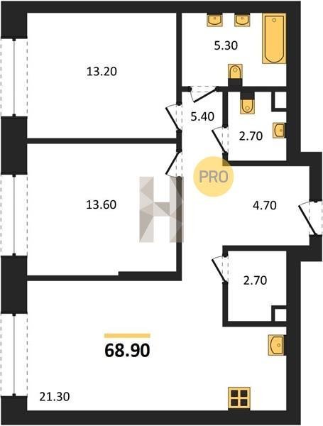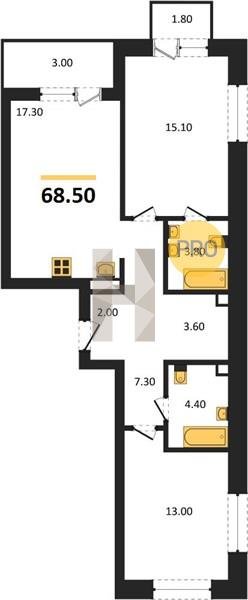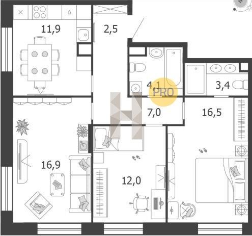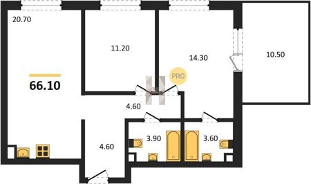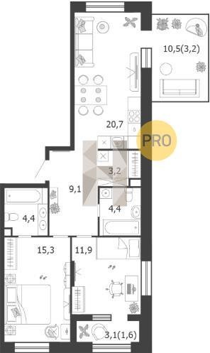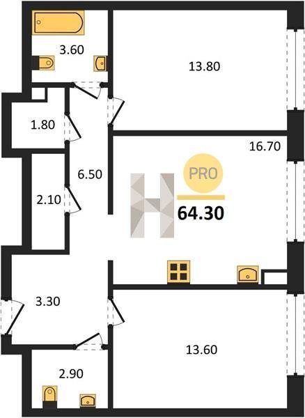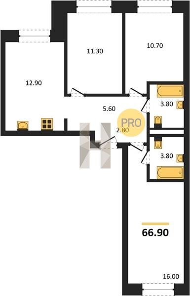 Площадь от 66.9 м2