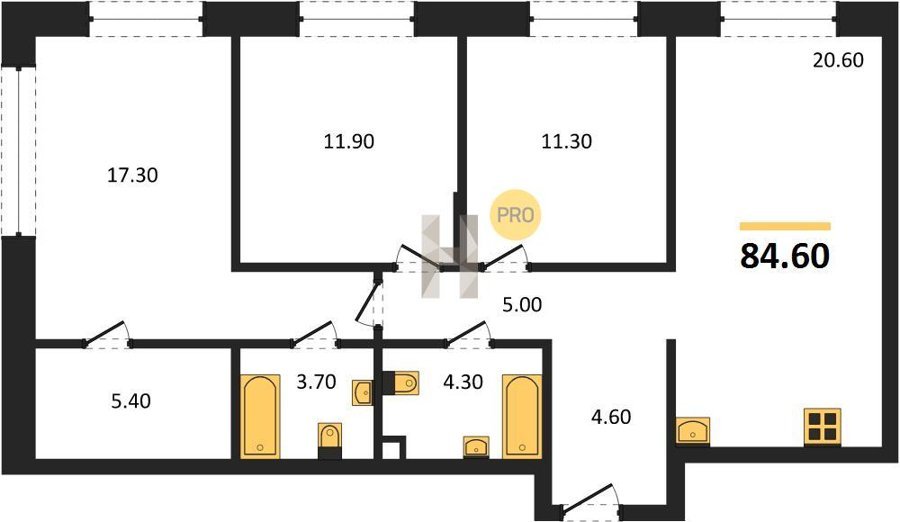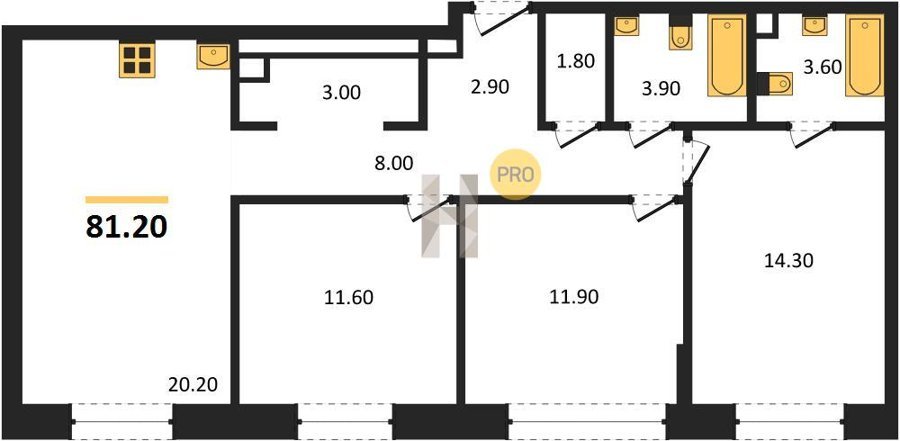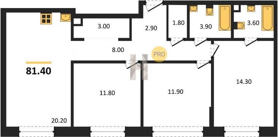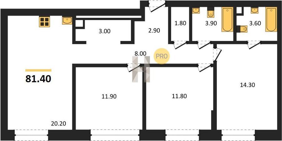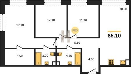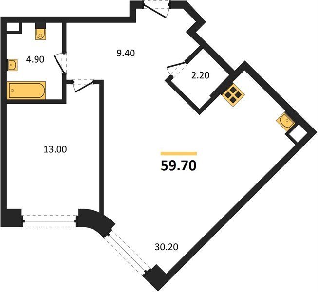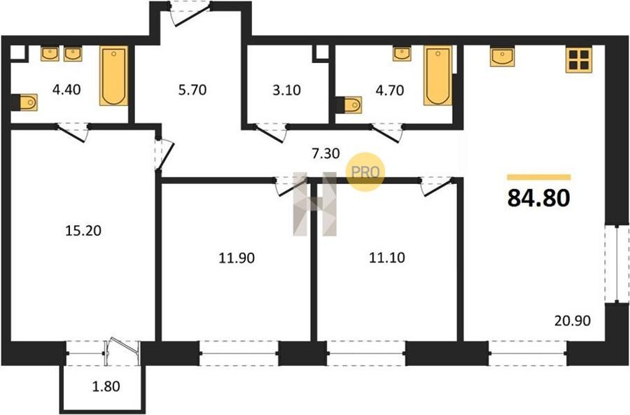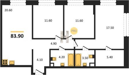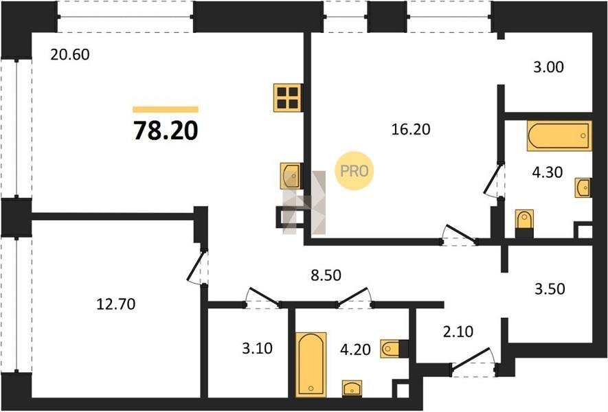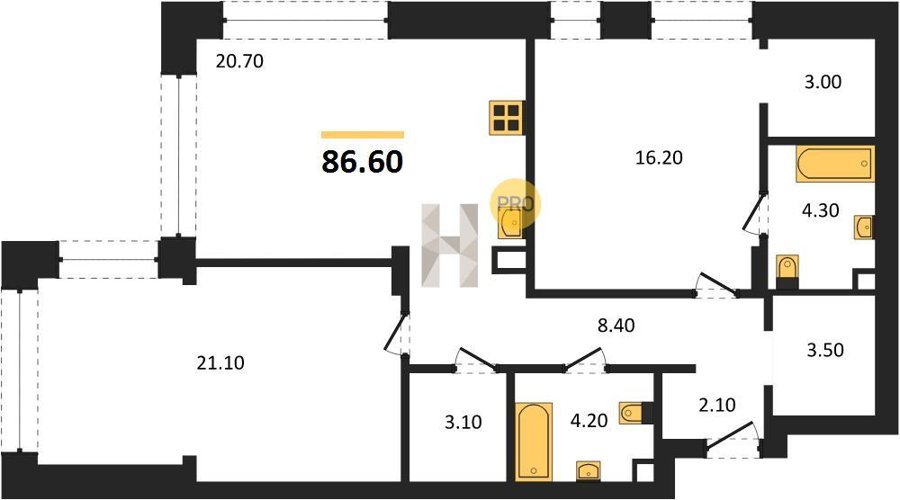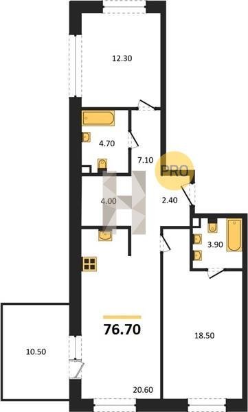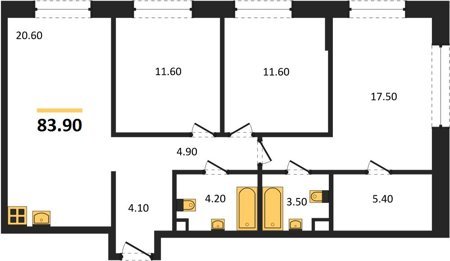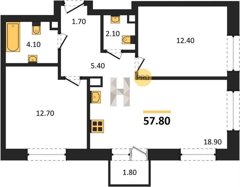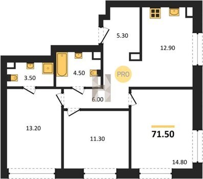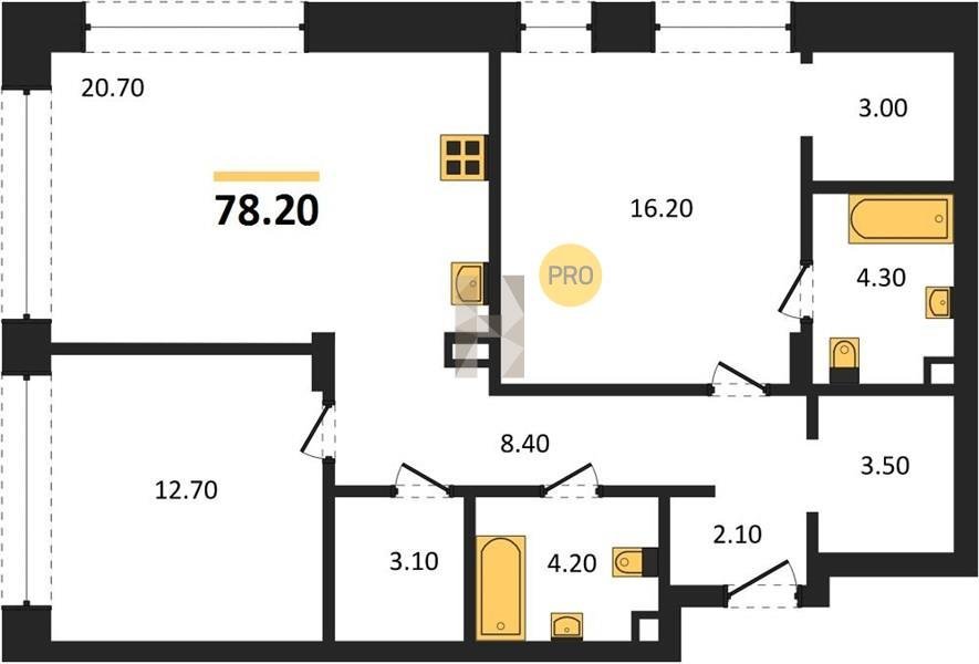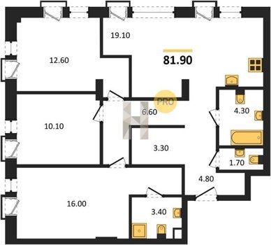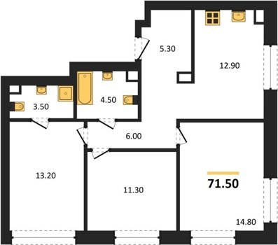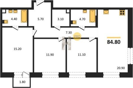 Площадь от 66.9 м2