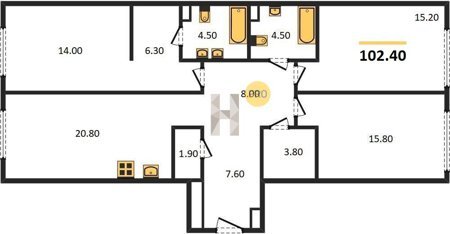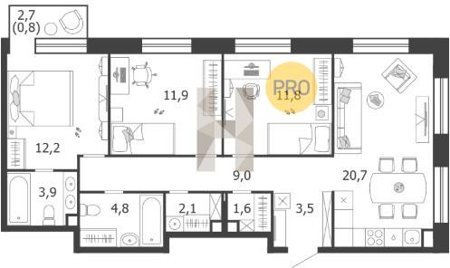 Площадь от 101.2 м2