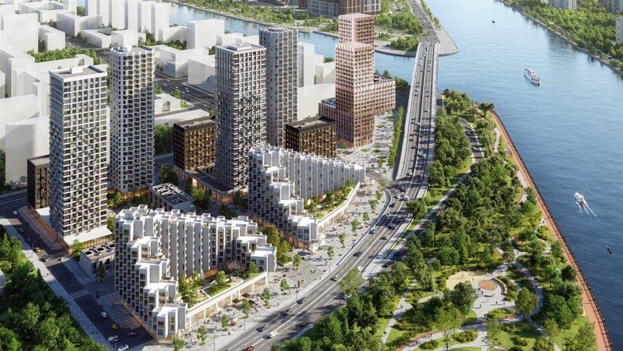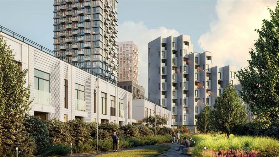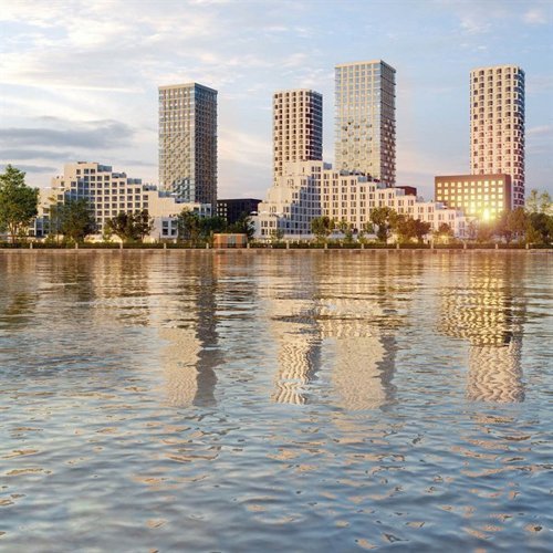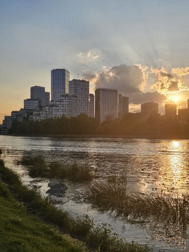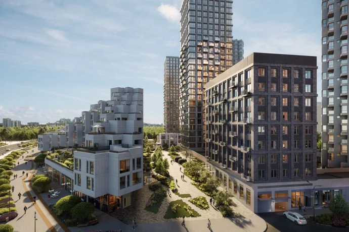 Архитектура объединяет инновационные решения и природные элементы, создавая уникальную атмосферу для городской жизни. Многообразие форм и высот монолитных домов, с панорамными окнами и светлыми фасадами, гармонично вписываются в ландшафт, подчёркивая красоту речного квартала.