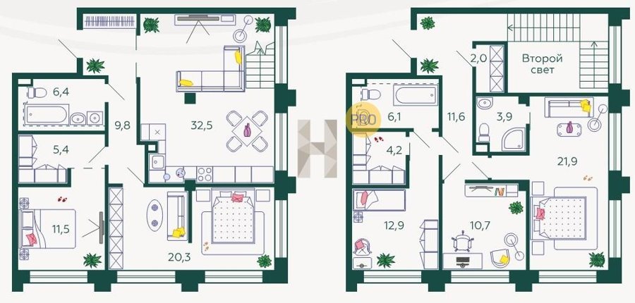 Площадь от 157.4 м2