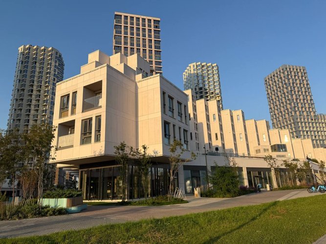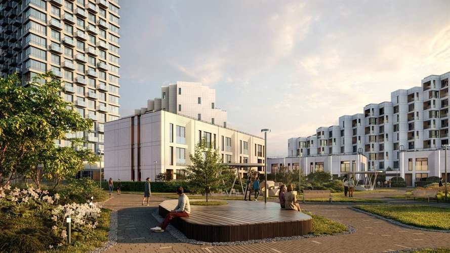 Инфраструктура отражает концепцию «15-минутного города», создавая среду, где всё необходимое — от детских садов до кафе и магазинов — находится в шаговой доступности. Прогулки по кварталу превращаются в приятные маршруты, соединяющие коммерческие, социальные и развлекательные пространства.